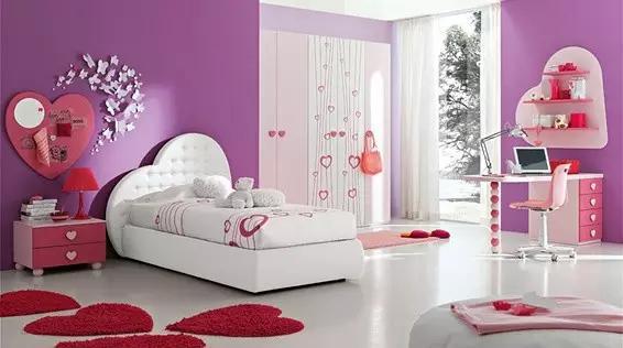 红色系的儿童房比较适合女孩子,不建议使用大红色,而应该采用粉嫩的红色、浅紫色等。