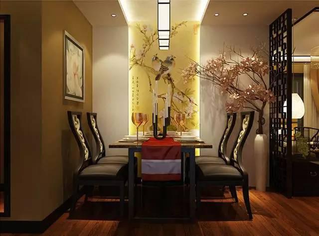 中国风的设计,充满中国古典韵味的餐桌与餐椅,配合大气的中国画装饰,让中国传统文化在这里尽显。角落里的中国瓷器花瓶,及黑色隔断,营造出的优雅的用餐气氛。