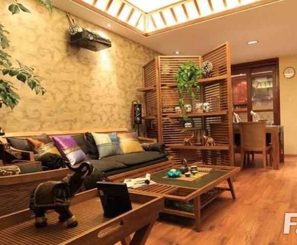 东南亚装饰风格的装饰材料多直接取于自然,木材、藤、竹为室内装饰首选。