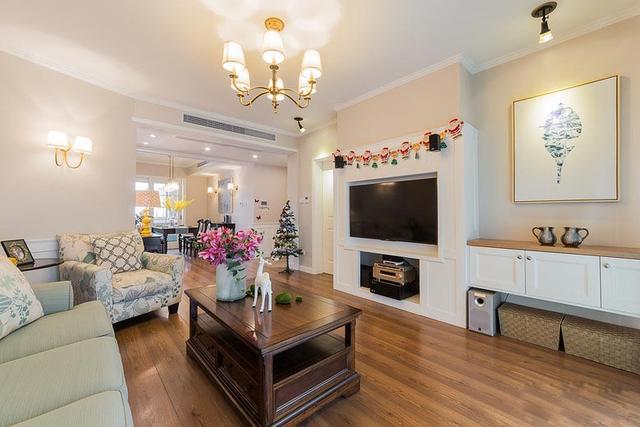 美式乡村风格110平三房装修案例,电视背景墙这样装被赞爆!