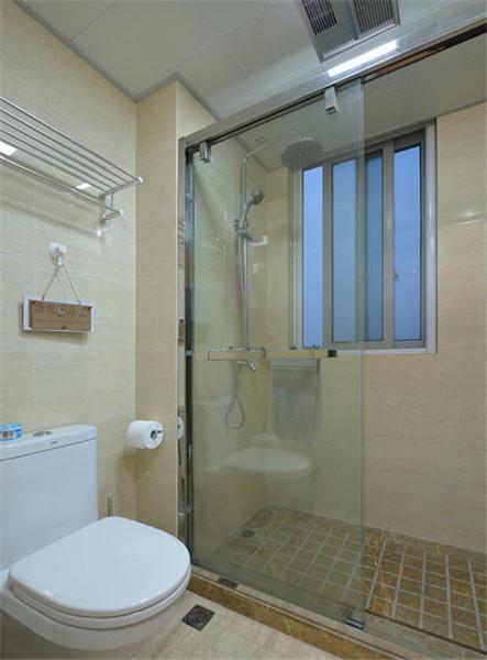 卫生间用玻璃推拉门进行干湿分离。