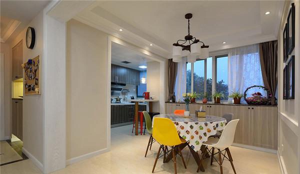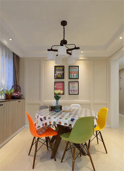 餐厅部分的面积还是蛮大的,但却没有选择大气的实木餐桌,而是选择的小圆桌,配合轻巧的小餐椅,反而显的更加的温馨,浓浓的家居氛显露无疑。