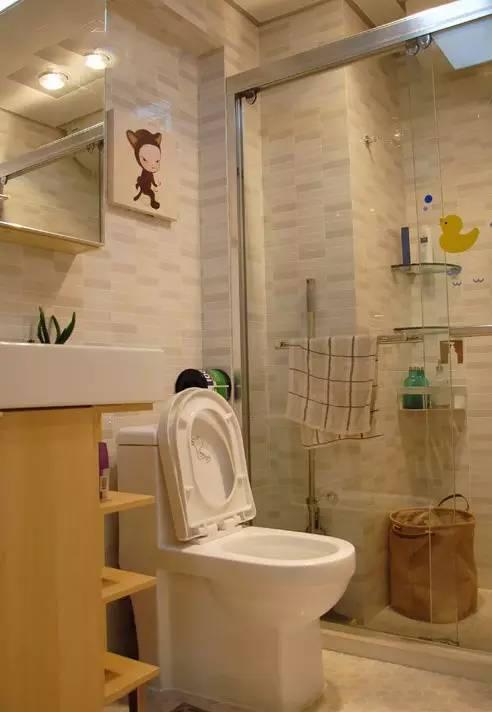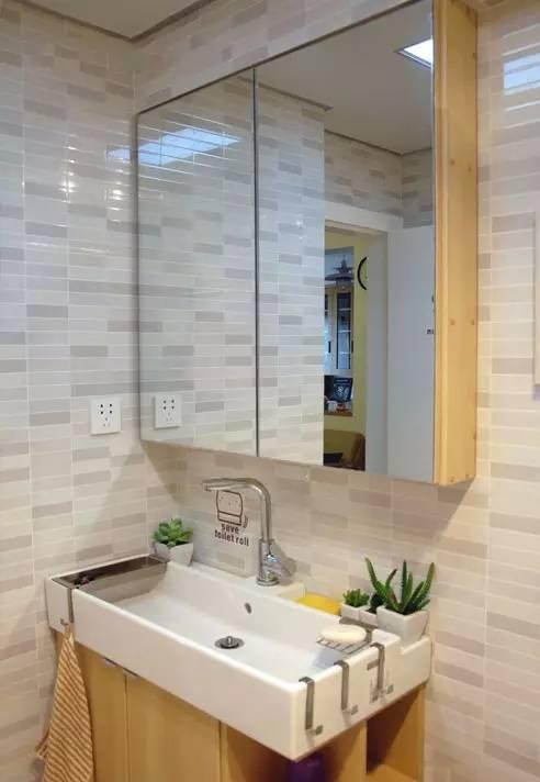 卫生间通过玻璃门做了干湿分离,卫生间空间较小,选择了宜家的浴室柜,镜柜,以提高空间的收纳利用率。