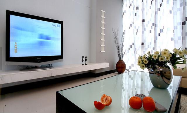 装修预算不是很足,连电视背景墙也没有过多的装饰,配合简约的电视背、皮质沙发、简洁的茶几,营造出来的现代实用感很强。
