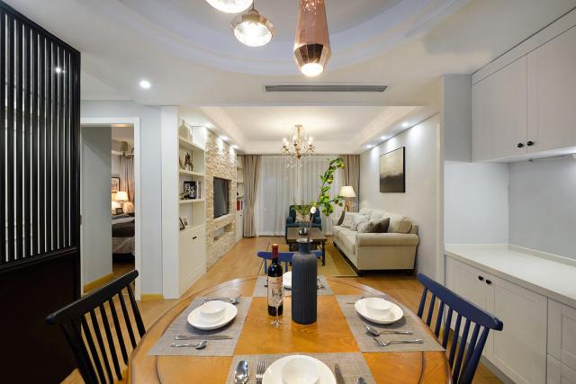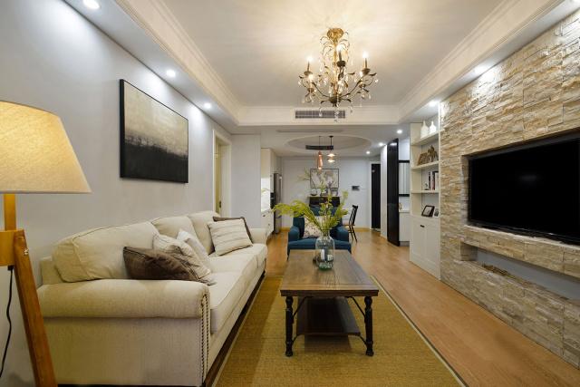 简约美式风格装修,既有美式的贵气,又有简约风的简洁,更符合现代人对家居空间要求。朋友家新居装修完成,乔迁之喜上门道贺,整体的空间设计非常漂亮大气,特别是文化石材质的电视背景墙成为亮点。下面就和“未来家装网”一起来看看这套简约美式风格装修案例吧。