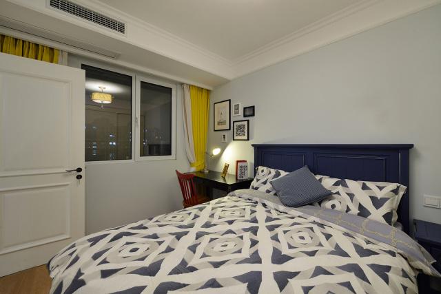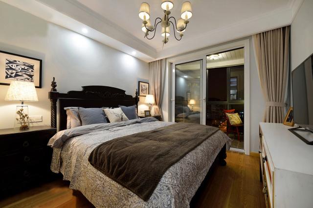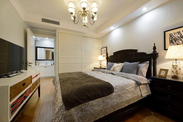 卧室同样没有过多的色彩,充分显露着简约美式风格的淡雅,虽没有欧式的奢华,但却有着北欧的温馨,又不缺乏美式的大气。