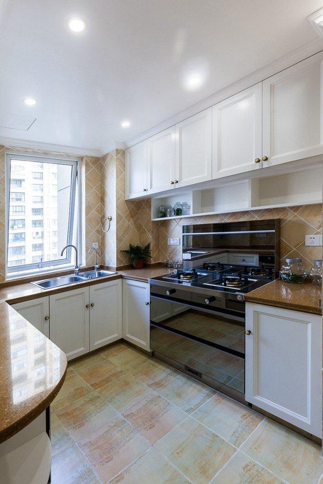 整洁干净的厨房,白色的橱柜显得如此优美。似乎少了什么东西吧?是的,没有装抽油烟机,可能不会在家做饭吧。