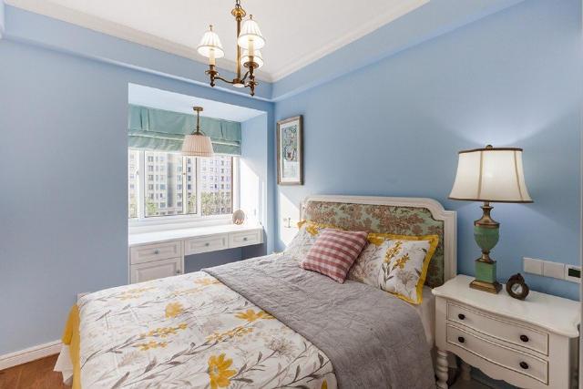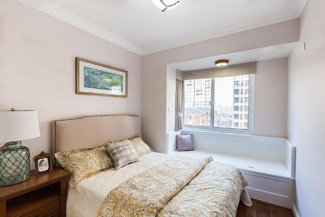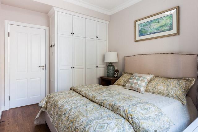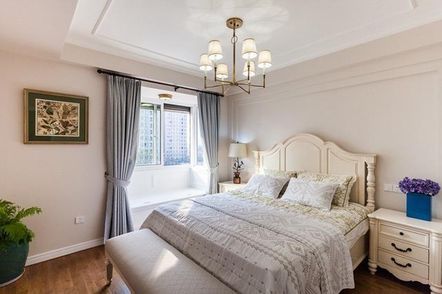很多特色的主卧,大大的飘窗、造型优美的实木床,体现着浓浓的美式范。