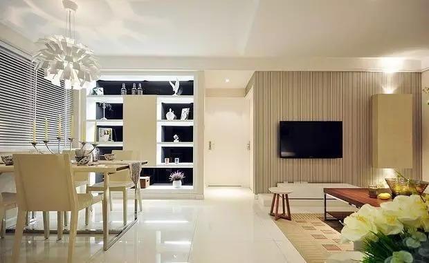 用米白、米黄、原木色三种色彩打造了一个浪漫又富有情怀的家居环境,正是这些颜色让这个小户型有种大空间的视觉感官。进门的左手边是客厅,右手边是餐厅。家具的选择以木质小巧为原则,整体搭配非常满意。