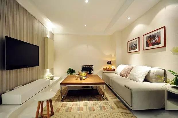 正面角度的客厅,幸福满满啊,就是没有阳台,以后大白天也要开灯了。但客厅的装修、家具的搭配非常合我的口味,摒弃了一切繁琐的设计,与我的生活理念完全吻合。电视背景墙是亮点,还好没用大理石什么的。布艺的沙发、简洁的茶几、白色的电视柜让这个客厅充满着幸福感。