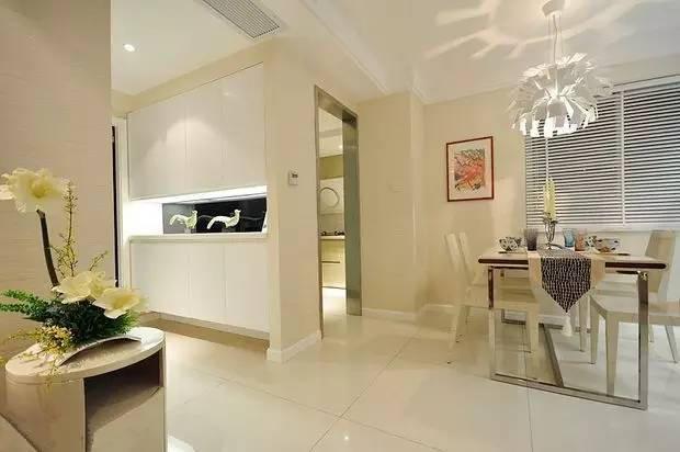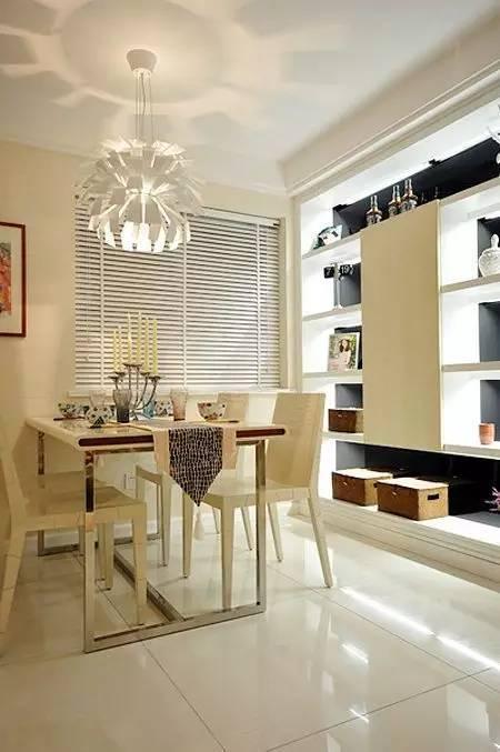 这个角度看餐厅怎么样,现代简约风格的餐桌餐椅为这个简约浪漫的空间平添些许的生动。