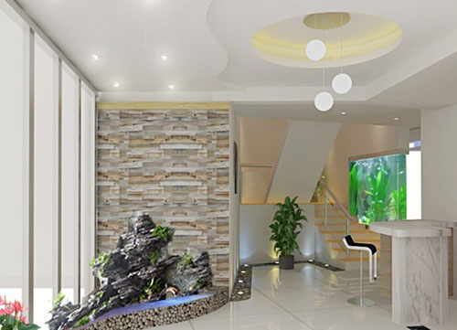 占用的位置不大,假山、喷泉、鹅卵石,好有意境哦!