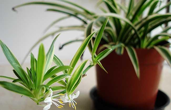 吊兰为多年生常绿草本植物,容易养殖适应性强。吊兰可吸收室内80%以上的有害气体,吸收甲醛的能力超强,同时能将火炉、电器、塑料制品散发的一氧化碳、过氧化氮吸收殆尽,还能分解苯、吸收香烟烟雾中的尼古丁等比较稳定的有害物质,故吊兰又有“绿色净化器”之美称。