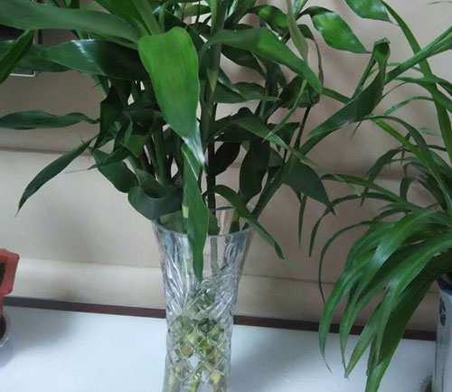 富贵竹的叶片翠绿,茎秆笔直,圆形似竹,可以长期摆放在室内水养,不需要特别养护,只要提供足够的水分,就能旺盛生长。水培时,将富贵竹茎秆切成20厘米以上的小段作为插穗插在水中,只要插穗的1/3能浸在水中就可生根成活。