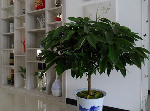 如:幸福树、鸭脚木、平安树、发财树、橡皮树、年菊、南洋杉等,可摆放在客厅入口处、大厅角落、楼梯旁。