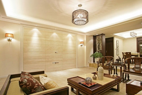 中式装修的墙面、地面与普通装修没什么区别,墙面用白色乳胶漆或浅色壁纸都可以,地面用地板、石材、地砖、地毯均可。没有中式的那份深沉,多了一份现代风格的轻快。