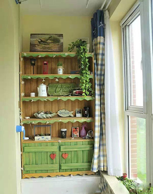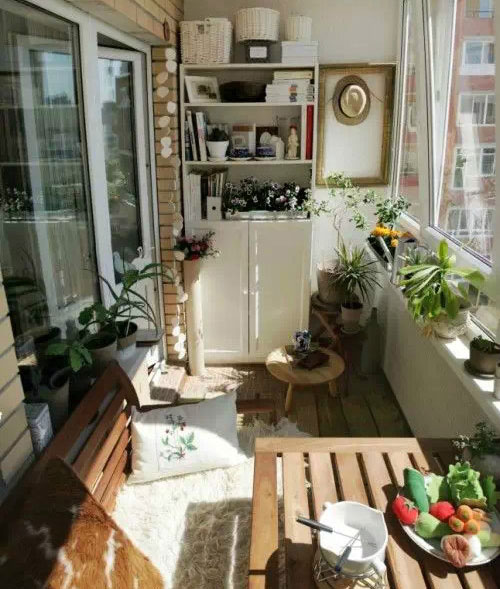 小小的阳台被装修成小会客室,摆上沙发茶几,别有一番风味?这种比较适合阳台比较方正的户型,面积要稍稍大点才行,不然摆不下沙发哦!