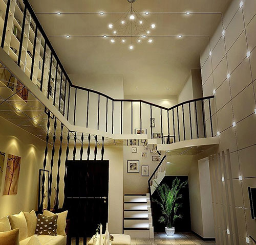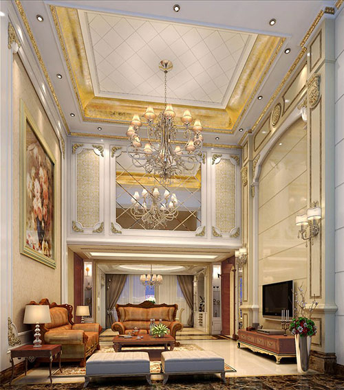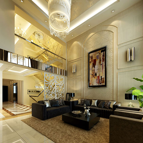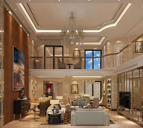 复式客厅建议对吊顶进行特别的设计与装饰,好的吊顶能够使整体格调更加高雅。