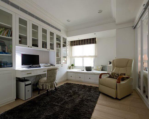 书房逐渐成为家庭中的标配空间,其装修设计应根据个人喜好、家中整体的装修风格来定。但做为一个独立的空间,在装修时还是应以轻装修为原则,装饰性的部分能简则简,留给我们更多的空间来工作学习。