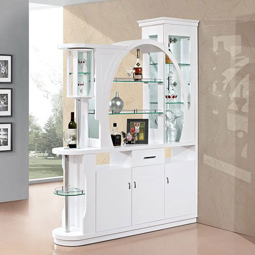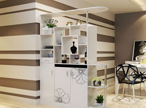 这款客厅隔断算是比较中规中矩的,上面设计成酒柜,下面设计成储物柜,丰富了客厅隔断内容,适合于面积比较大的户型。