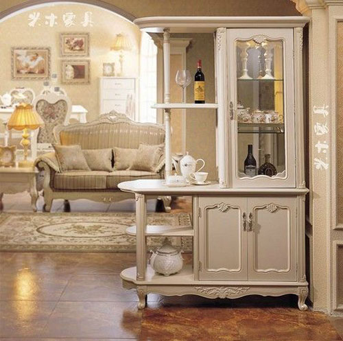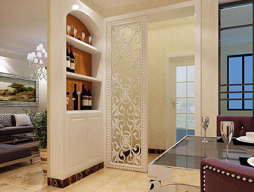 有些欧式风格的酒柜隔断,色彩与家装的整体设计风格完美的结合。