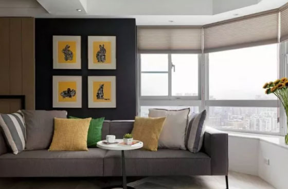 拐墙墙面设计出来的飘窗,视线非常好,如果窗外的风景不错,这样做简单就是把自然风光搬进你家了。既有利于大面积的玻璃采光,又保留了宽敞的窗台,使得室内空间在视觉上得以延伸。一边看风景,一边闲聊或者博弈,繁重的生活就显得难得轻松。还可以在飘窗底部铺上一层柔软的榻榻米,放几个靠枕,轻松拥有休闲的角落。