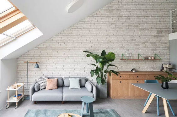 将阁楼装修成一间会客厅,摆放沙发茶几等,成为家里的第二个客厅空间,方便和来访的朋友探讨一些比较私密性的问题。