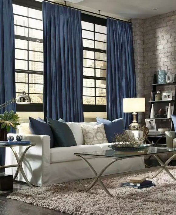 搭配深蓝色的窗帘,营造出一种轻奢的质感,让空间的效果更有档次。不同色彩的使用表现出来的视觉效果千差万别,装修前的色彩搭配格外重要。