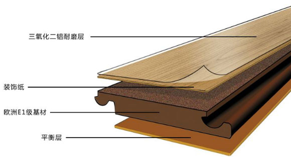 2.强化复合地板:以木粉、树脂、有机材料等为原料,通过高温高压等方式制作成基材。下衬防潮膜,上覆饰面纸,最上层覆盖三氧化二铝或三聚氰胺等硬质保护层所制成的复合型地板。耐用性好、饰面多样、价格便宜,但低端含胶、膨胀率高、脚感较差。