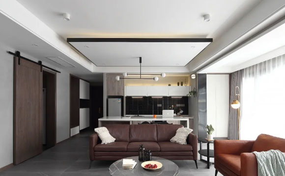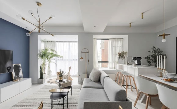 客餐厅一体的户型很是常见,直接把餐桌放在客厅沙发的后面,增加空间灵动性的同时,还能保持室内的开阔性。