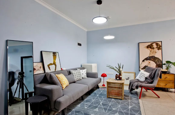 对于面积不大的小户型空间来说,沙发靠墙是最为常见的摆放方式,虽然看起来会稍显简陋,却也不会占据过多的位置。