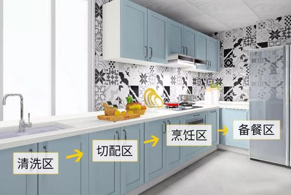 厨房动线指的是从洗菜、切菜、炒菜、放盘等行动路线,想让厨房的动线更加流畅,就要从厨房的空间布局说起。
