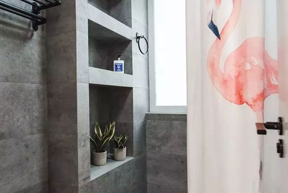 都知道玻璃隔断能隔绝水汽干湿分离,但玻璃隔断不仅造价要高许多,还会让卫生间显得更加局促,反而是浴帘,不仅价格便宜还能随时更换,更省下了清洁玻璃的程序,真是省钱又省事。