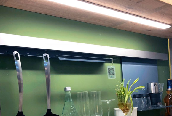 现在厨房装修大多只有一盏主灯,除了在水槽上方预留灯位外,还可以进行分布式光源设计,照明无死角。建议在吊柜的底部还安装感应灯,非常时尚,实用性又很强。无死角的照明设计,能大大提升下厨时的幸福感。