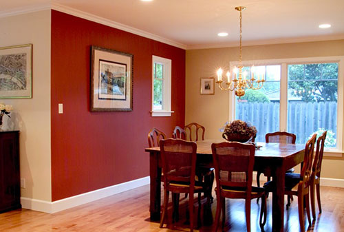 红色的餐厅装修,对墙面色彩的选择,配以深色的实木家具,又是另一番风景。